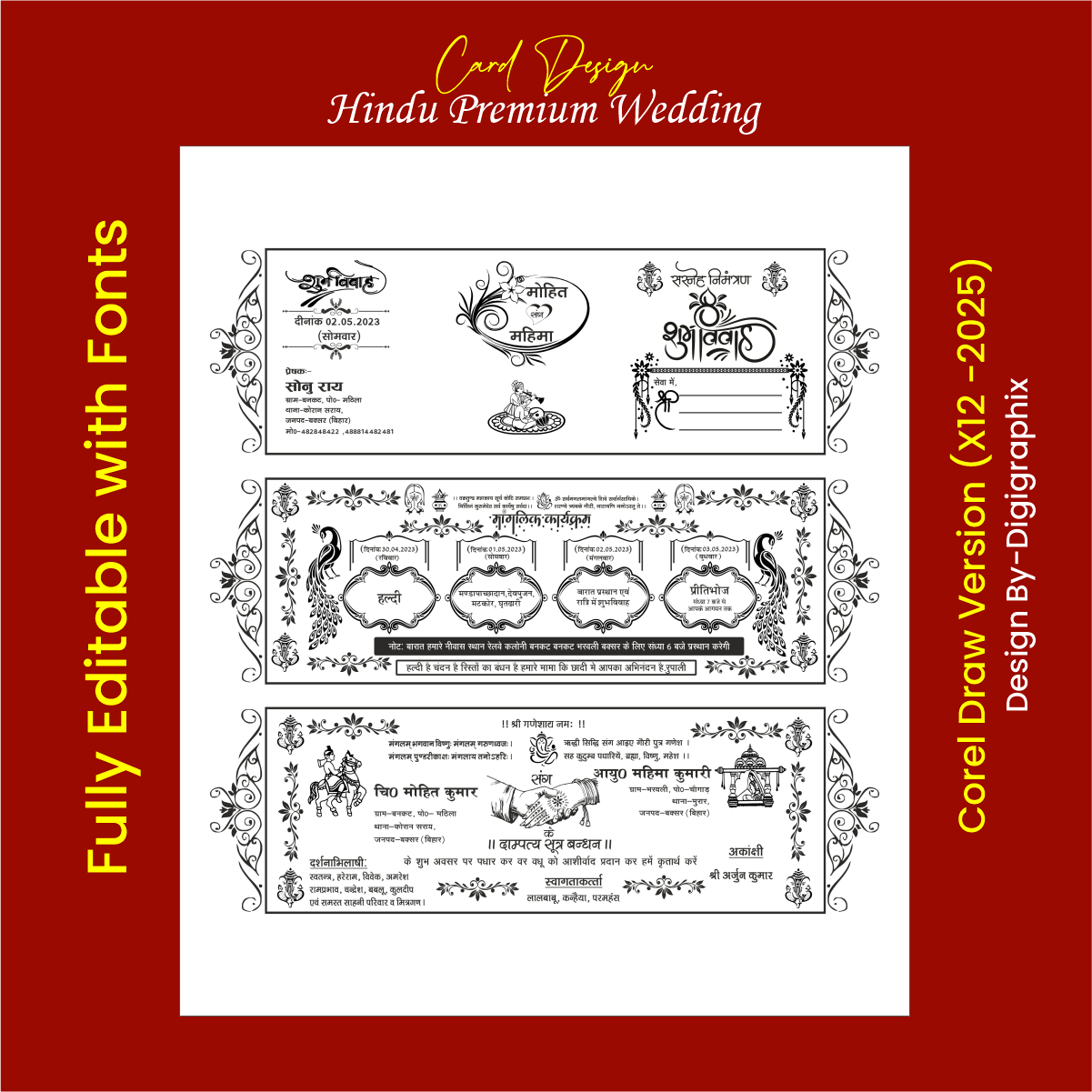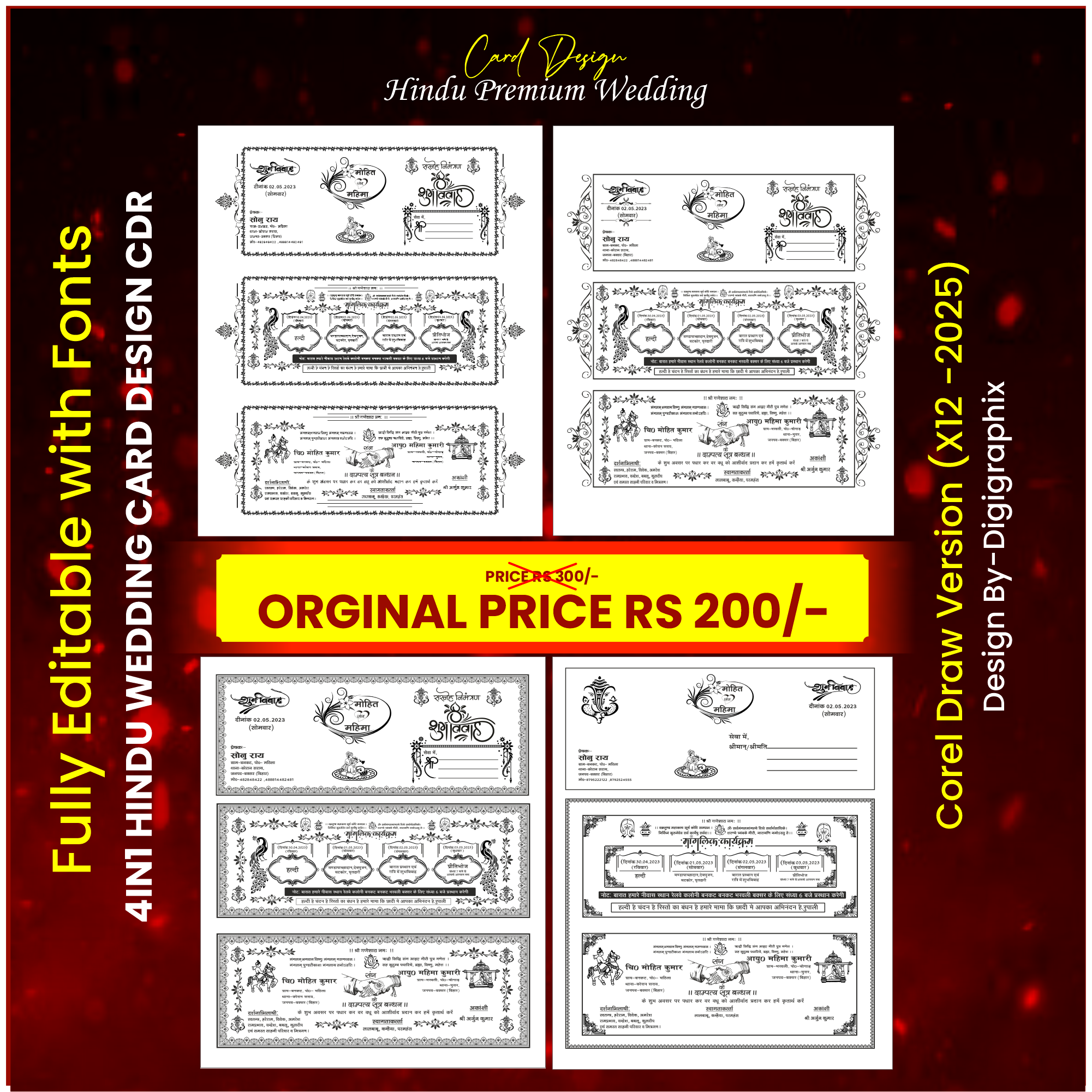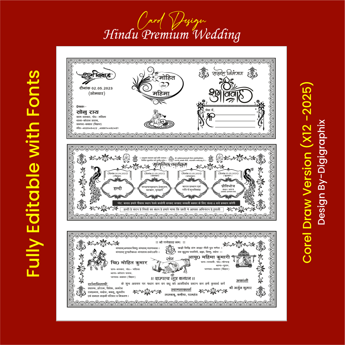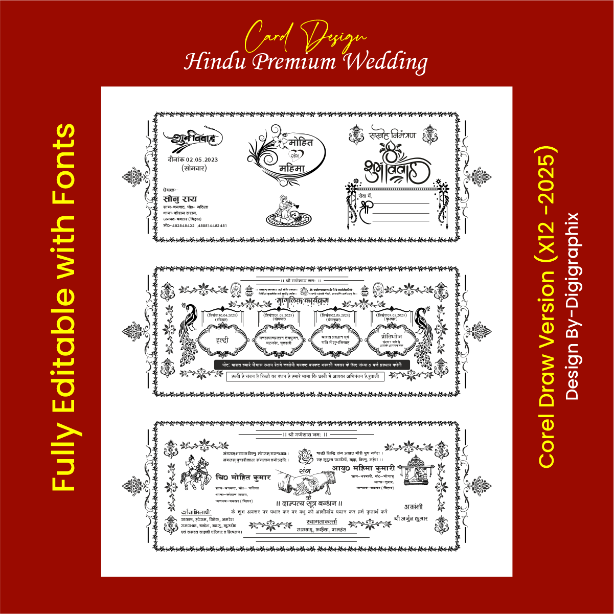 Hindu Premium Wedding card Design CDR 4in1 With Fonts
