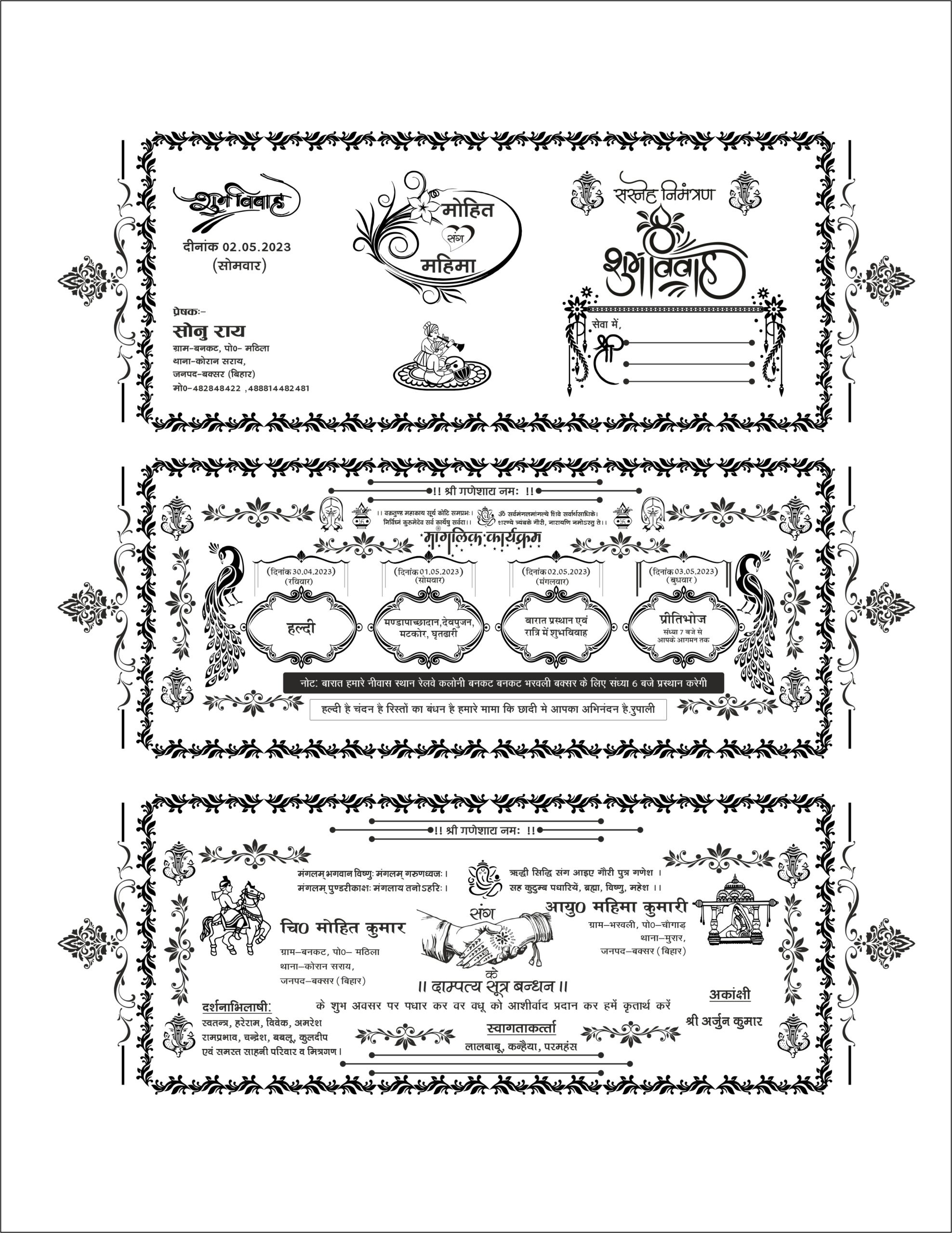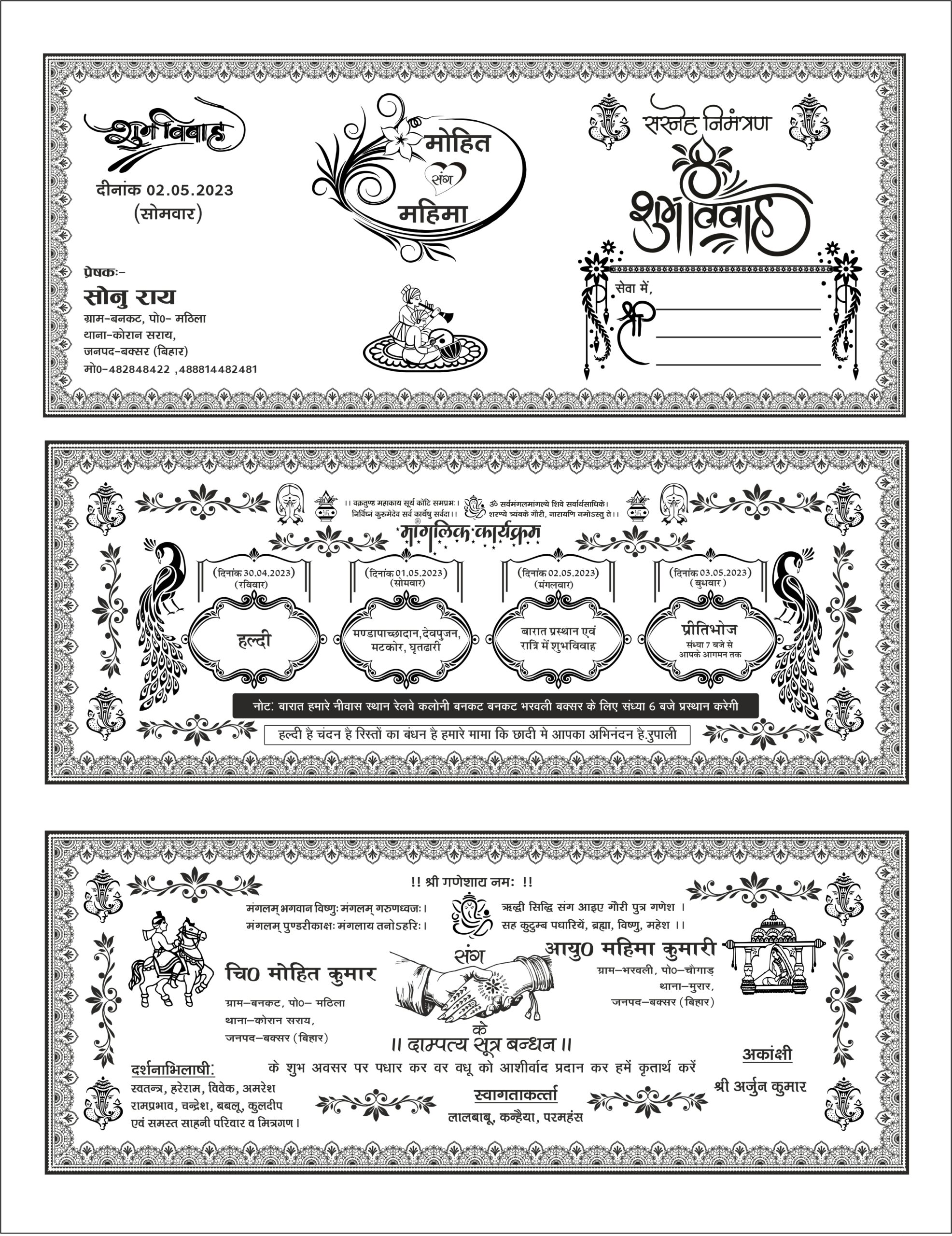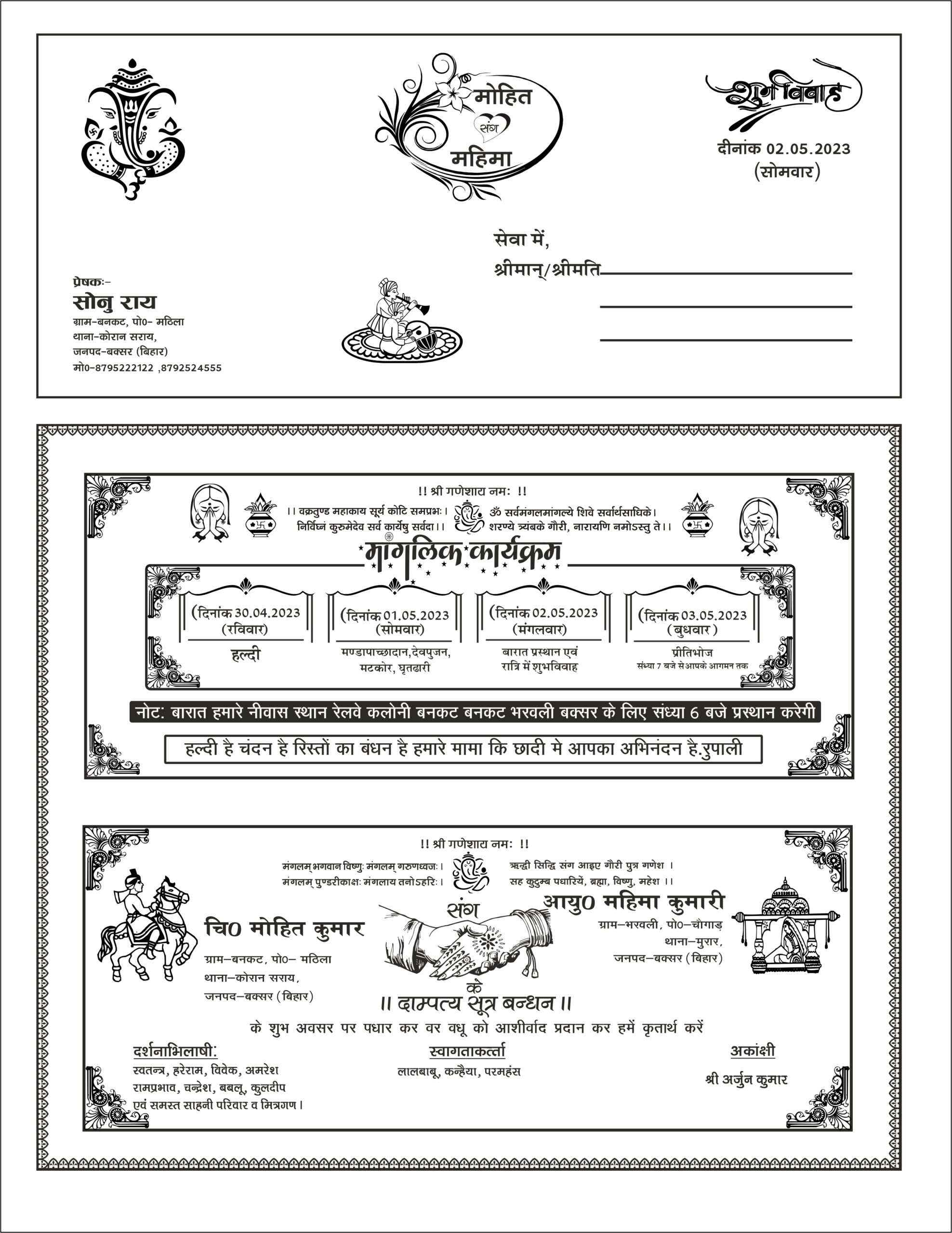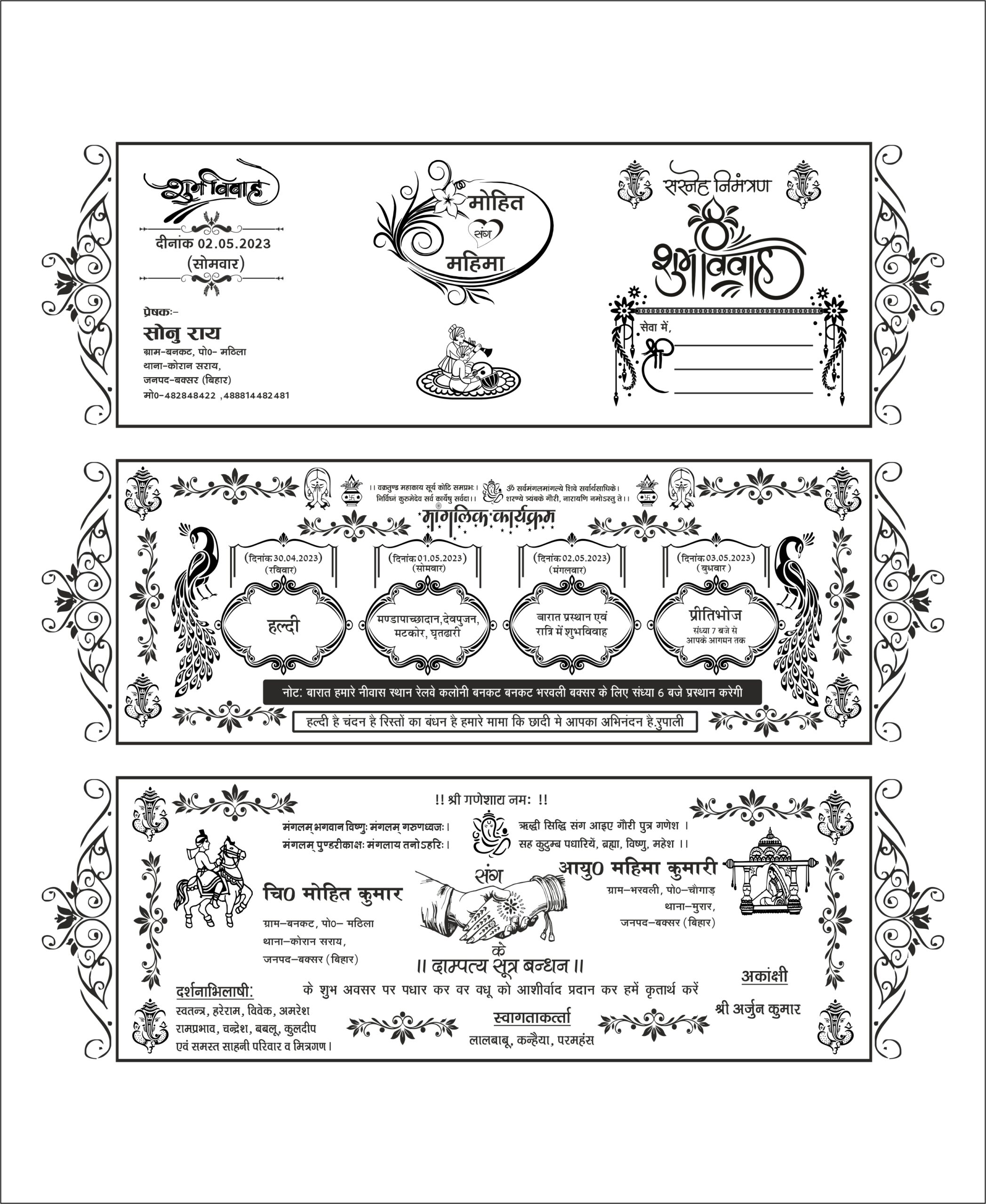 Hindu Premium Wedding card Design CDR 4in1 With Fonts